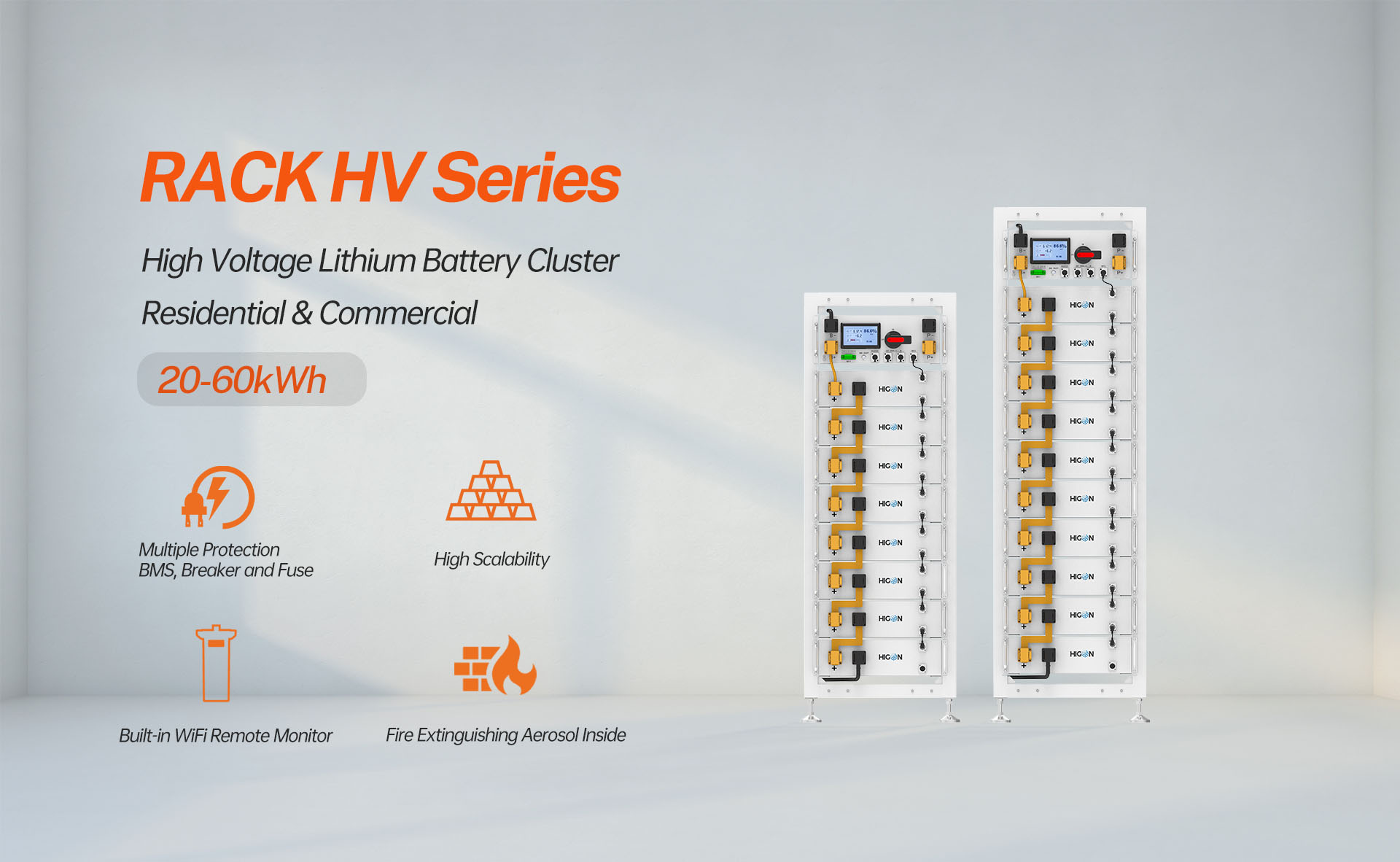 RACK HV Das leistungsstarke, eingebettete LiFePO4-Batteriemodul RACK HV zeichnet sich durch schnelle Installation und einfache Wartung aus. Dank fortschrittlicher Sicherheitsmechanismen, eines intelligenten Batteriemanagementsystems (BMS) und eines umweltfreundlichen Designs ist es die ideale Wahl für Notstromversorgung und die Speicherung erneuerbarer Energien. RACK HV bietet eine zuverlässige und effiziente Lösung für kleine Energiespeichersysteme (ESS) im gewerblichen und industriellen Bereich. Dieses innovative Batteriesystem ist auf Leistung und Zuverlässigkeit ausgelegt und erfüllt vielfältige Anforderungen an das Energiemanagement, während es gleichzeitig nachhaltige Energielösungen unterstützt.