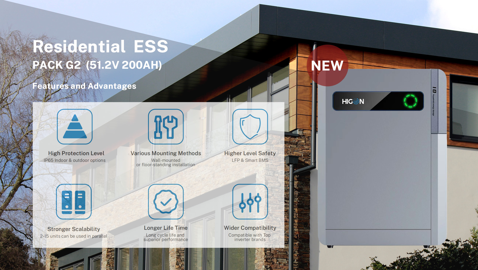 Der PACK G2 ist ein neuer, hochkapazitiver LFP-Akku, der entwickelt wurdefür den Tiefzykluseinsatz geeignet und zeichnet sich durch erhöhte Sicherheit und eine verlängerte Laufzeit aus.Lebensdauer und ein optimiertes Nutzererlebnis. KonkretDank der IP65-Zertifizierung bietet es flexible Einsatzmöglichkeiten im Innenbereich.oder Optionen für die Außeninstallation, einschließlich Wandmontageund Bodeninstallation. Ein einzelnes Gerät liefert bis zu 10kWh Leistung und die Möglichkeit, bis zu 15 Geräte anzuschließenGleichzeitig bietet es eine überlegene Leistung, um die Anforderungen zu erfüllen.Strombedarf der Haushalte.